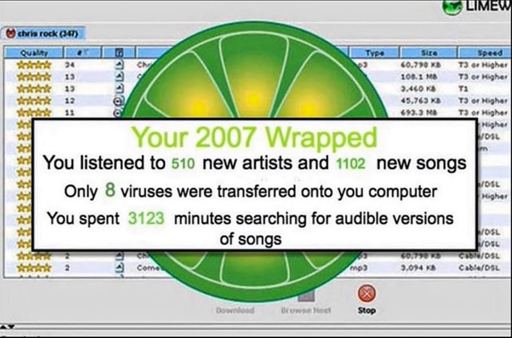 I’d wanna see my kazaa wrapped. I used limewire for a while but my large p2p music library was built in the dial up kazaa and emule era.
