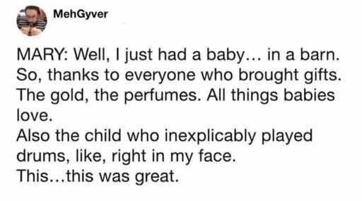 But that song sings about the drummer boy who drums for the Jesus because he had no other gift to give