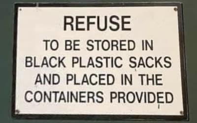 Isn’t refuse another word for trash? You can wooosh me but the sign is correct “trash to be stored in bags”