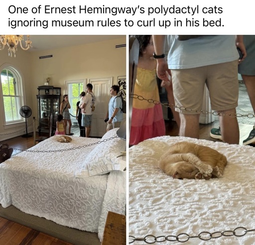 I’ve been to the house. It’s mostly open to the cats, and they say they’re not allowed but every visitor says there was a cat asleep on the bed.