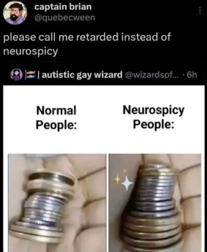 So… I might be neurospicy or retarded or both or either… but IMHO it’s perfectly rational to sort. It means you get access to the sum or individual pieces way WAY faster than otherwise. What’s arguably less rational though is if you can’t help yourself, even in a life or death situation, and have to sort coins instead of doing CPR. Then it’s not normal.