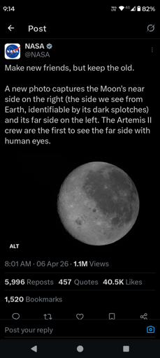 NASA posted a tweet that said humans would see the far side of the moon for the first time today as Artemis goes around.